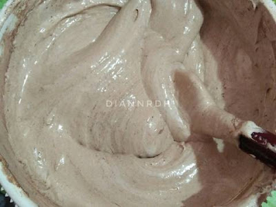 4. Ambil kira" 5 sdm adonan, campur dengan bahan 3 yg sudah dilelehkan tadi. Aduk rata.